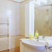 Located in a beautiful building on the fourth floor with elevator with a large living room with 1 single sofa bed. There are two bedrooms. The first bedroom with a double bed, single bed and bunk bed. The second with a double bed. There are two bathrooms with shower, a kitchen equipped with dishwasher, washing machine, microwave and dining table.